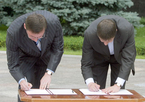 У четвер лідери "Нашої України" і "Народної самооборони" В’ячеслав Кириленко і Юрій Луценко підписали декларацію про створення єдиного виборчого блоку.