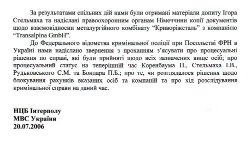 Через місяць, у червні 2005 звернення такого же змісту надійшло від Головного кримінального комісара Німеччини до заступника міністра внутрішніх справ Олександра Бондаренка.