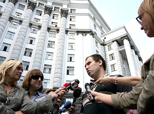 Син міністра оборони Анатоліія Гриценка розповідає журналістам, чому він бере участь у пікетуванні установи, в якій працює його батько