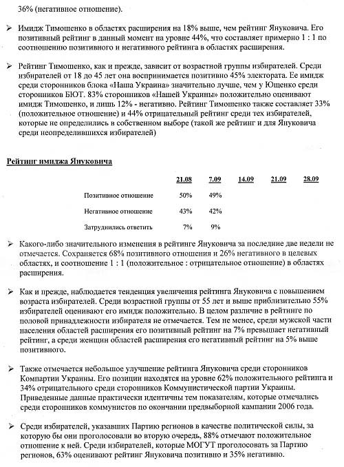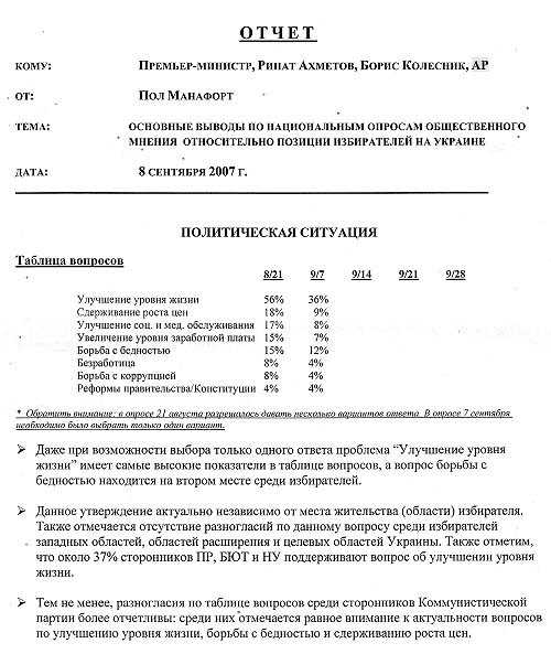 8 сентября текущего года консультанты подготовили весьма детальный документ с "Основными выводами по национальным опросам общественного мнения относительно политической ситуации в Украине".