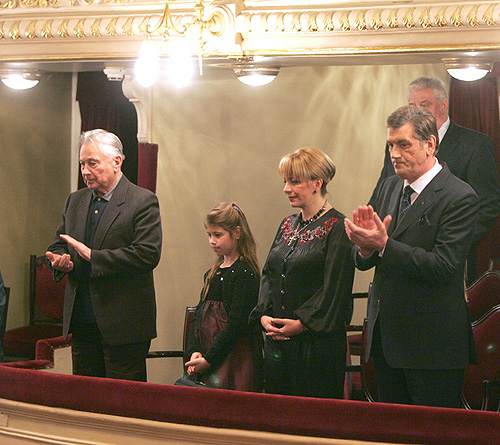 Позднее в Национальном академическом театре оперы и балета им. Т.Шевченко президент присутствовал на поминальном действе "Чорна рілля ізорена".