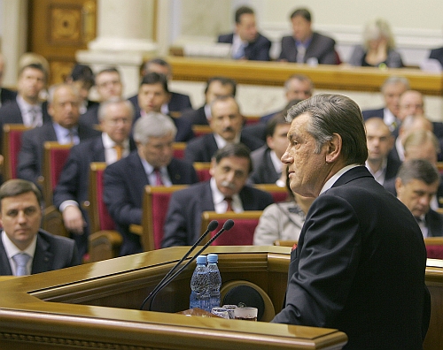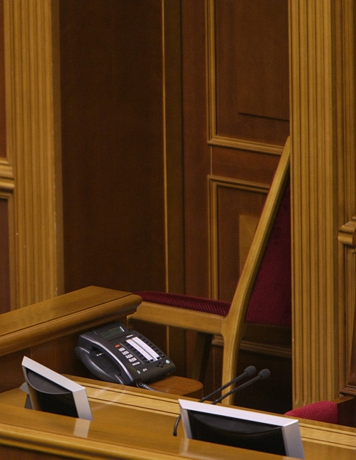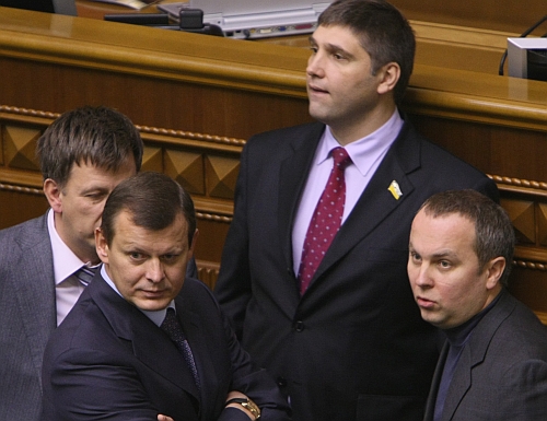 В то время, когда фракции коалиции заявляли о технических причинах неголосования двух карточек, депутаты от Партии регионов заблокировали трибуну