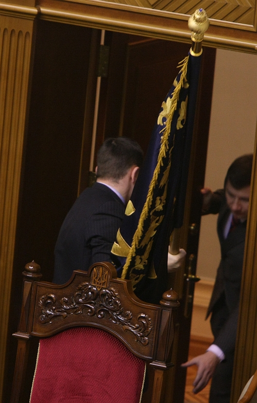 Депутаты, которые сначала блокировали трибуну, решили также не впустить Яценюка для продолжения работы после перерыва. Позже, по словам Луценко, были уничтожены "верхний микрофон, вмонтированный микрофон, кабели, ведущие от рабочего места, разобрано практически все питание этого рабочего места"