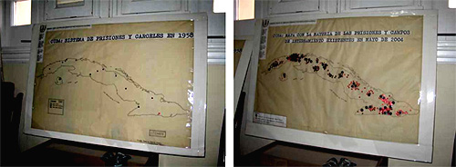 | Пеницитарная система во время режима Батисты (1958) и Кастро (2004). Количество тюрем можете сосчитать сами |