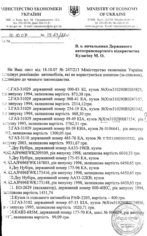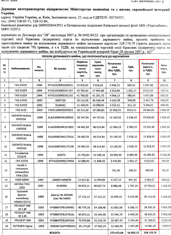 Как видно из приведенных документов, речь идет об устаревших автомобилях с остаточной стоимостью несколько сот или тысяч гривен.