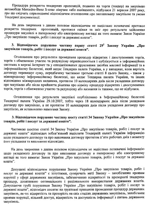 Теперь Тендерная палата, которую патронирует БЮТ, требует отменить закупку этого представительного автомобиля для министра. Хотя на самом деле формальная причина для иска – это нарушение законодательства в части предоставления документов.