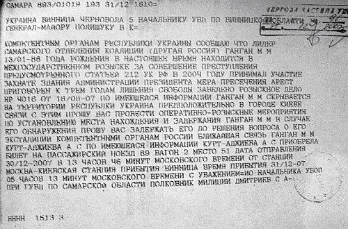 Из приведенной выше телеграммы даже украинским пинкертонам, которые, возможно, увлеклись тренировками собственных внутренних органов перед новогодней гастрономически-алкогольной нагрузкой, нетрудно было понять, что Михаил Ганган не простой урка, а лидер Самарского отделения коалиции "Другая Россия", и потому относиться к нему следует как к "политическому".
