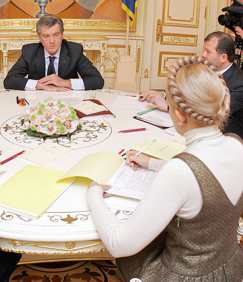 В четверг президент Виктор Ющенко провел традиционную еженедельную встречу с премьером Юлией Тимошенко и спикером Арсением Яценюком.