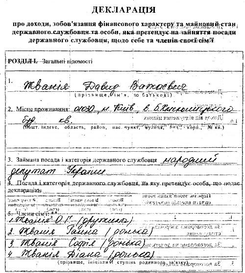 В связи с тем, что кандидатуру Жвании, вопреки протестам Банковой, все равно внесли на должность главы Антимонопольного комитета, депутатам раздали декларацию о доходах украинского политика грузинского происхождения.