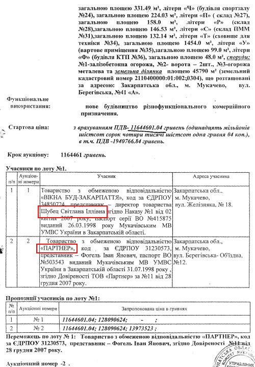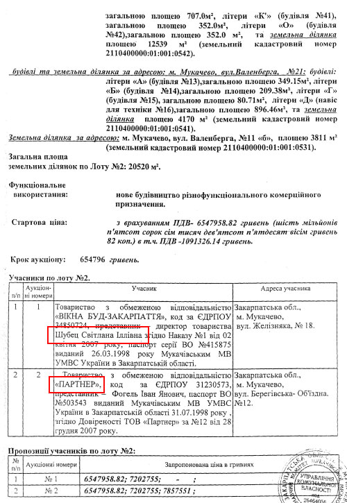 У обоих аукционов был одинаковый состав участников. И там, и там принимали участие две фирмы – ООО "Вікна Буд-Закарпаття" и ООО "Партнер".