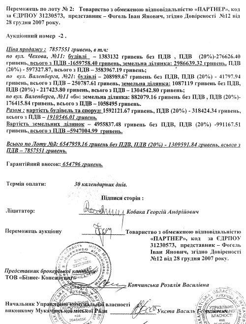 Оба раза победила фирма "Партнер". Деньги в размере 22 миллиона гривен она своевременно перечислила за оба приобретенных лота.