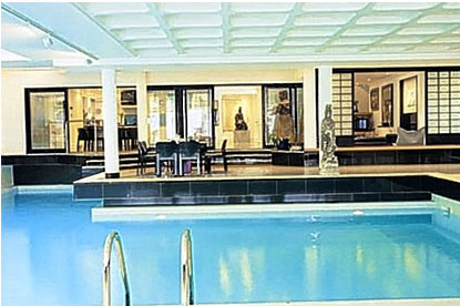 Подземный туннель соединяет дом с гаражом в трех местах. Снаружи также расположен японский сад с водопадом.