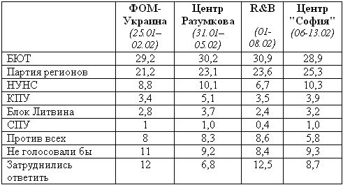 Правда затем часть западноукраинских избирателей вернулась в лагерь президента, и его рейтинг к концу февраля вырос до 33%. Но вернулись не все, часть бывших сторонников Ющенко переориентировалась на Тимошенко.