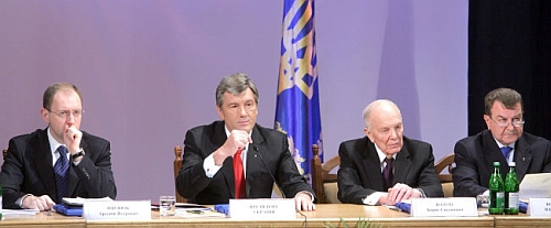 Первое мероприятие - выступление президента перед украинской интеллигенцией - той, которую сумела собрать в партере власть. Тема была немного странной - НАТО плюс гуманитарная политика. Но не дай Бог, если мы против такого мероприятия. Оно тоже необходимо, в частности и нам. Просто следует называть все своими именами.