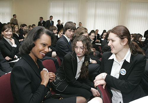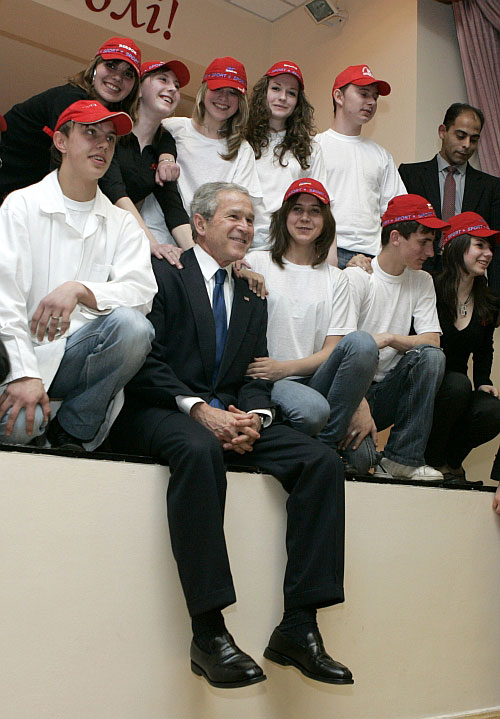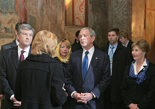 Во время посещения Софии Киевской американского президента сопровождала чета президента Виктора Ющенко. В школе компанию Бушу составила госсекретарь США Кондолиза Райс.