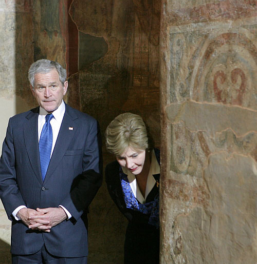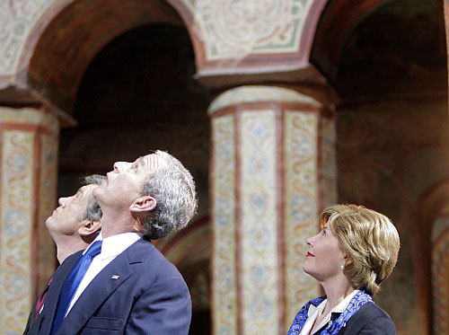 Во вторник кроме официальных встреч с руководителями Украины президент США Джордж Буш вместе с женой посетил Софию Киевскую и специализированную школу №57 с углубленным изучением английского языка, где посмотрел спектакль.
