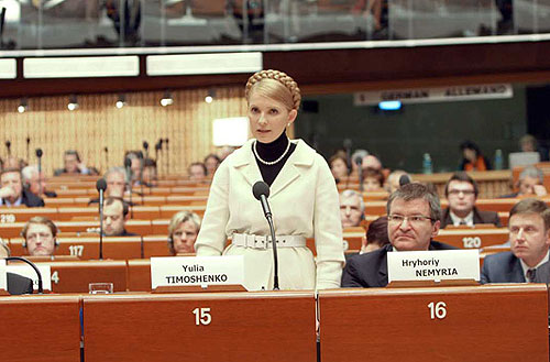 В январе 2005 года Ющенко приехал в Совет Европы на третий день своего президентства и пообещал раскрыть убийство Георгия Гонгадзе. Год назад Виктор Янукович надеялся взять Совет Европы союзником в борьбе с досрочными выборами. Теперь впервые на арену была приглашена Тимошенко. Это ее дебют – до сих пор она не выступала в заграничных парламентах или на сессиях международных организаций.