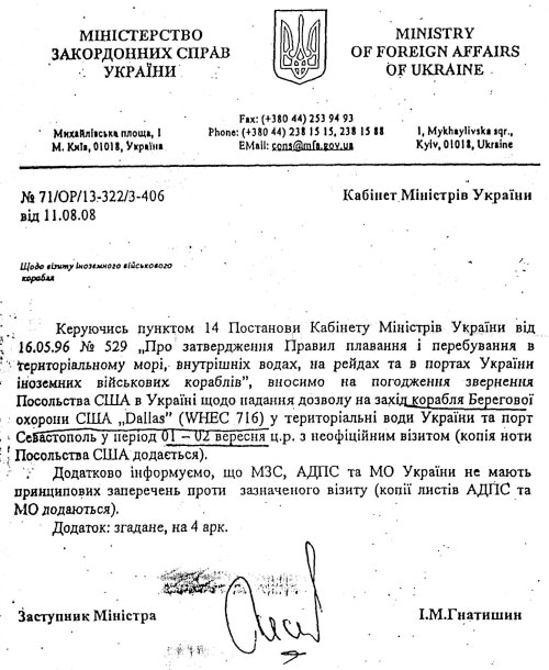 У розпорядження "Української правди" потрапив лист Міністерства закордонних справ на ім'я уряду з проханням дати погодження на появу "Далласу" в Севастоплоі.