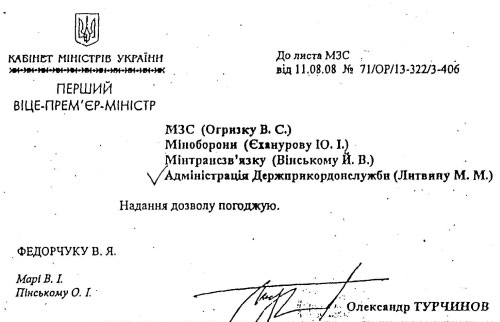 Того дня Юлія Тимошенко перебувала у невстановленому місці у відпусці, тому резолюцію "надання дозволу погоджую" поставив перший заступник прем’єр-міністра.