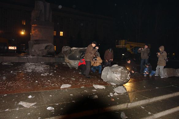 У Нововолинську Волинської області місцевого Леніна продали колекціонерам, а за виручені гроші відлито три дзвони для храму. Одеса, Суми, Ромни, Кременчу, Київ в різний спосіб позбуваються радянської монументальної пропаганди.