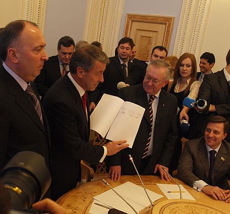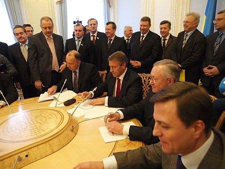 | Опівдні уповноважені особи фракцій БЮТ, НУНС і Блоку Литвина підписали коаліційну угоду, за якою тепер ділитимуть і важливі крісла |