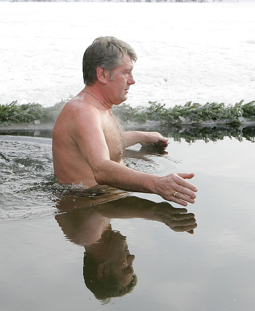 Президент Віктор Ющенко у понеділок здійснив традиційний ритуал. На Водохреще він пірнув в ополонку. Цього разу, з головою.