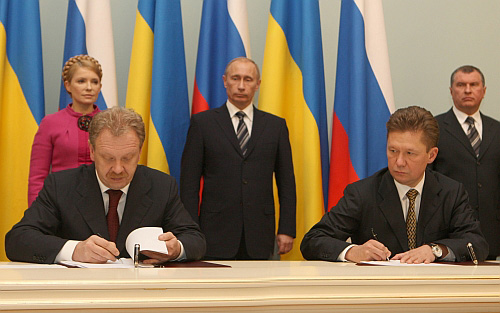 У понеділок ввечері "Газпром" і "Нафтогаз" підписали 10-річний контракт на поставки російського газу в Україну і його транзит в Європу. Керівники двох компаній підписували документи під пильною увагою прем’єрів України і Росії Юлії Тимошенко і Володимира Путіна.