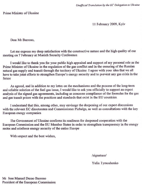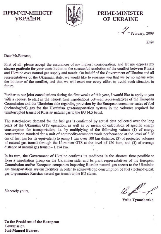 Видя страх в глазах европейских лидеров, Тимошенко открыто объясняет, чем они могут быть полезны. В распоряжении "Украинской правды" оказались два письма премьер-министра к председателю Европейской комиссии Жозе Мануэлю Баррозу от 7 и 11 февраля, в одном из которых Кабинет министров просит помочь Украине снабжением 4,5 миллиардов кубометров технологического газа для беспрерывного транзита Российского газа в Европу.