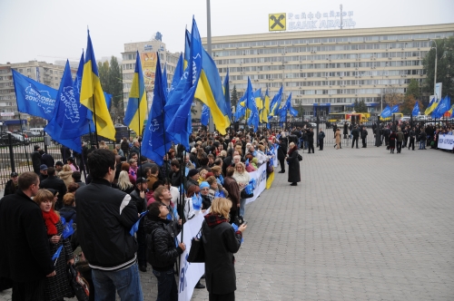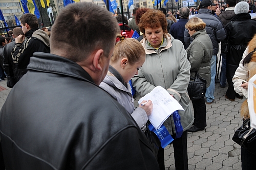 - Так, громко кричим "Янукович!", и не расходится до конца акции, - наставляв на путь істинний керівник групи передні ряди, роздаючи їм по ходу синенькі прапорці.