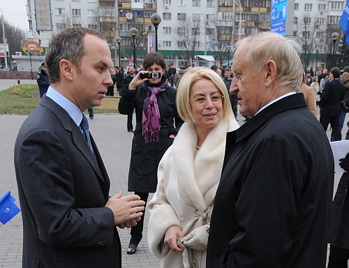 У зв'язку з цим штаб Партії регіонів влаштував під ЦВК міні-мітинг. Близько 500 осіб, озброєних партійними прапорами й лозунгами "Янукович – наш президент", чекали свого лідера у дворі Центральної виборчої комісії. Ряди оглядав Юрій Бойко.
