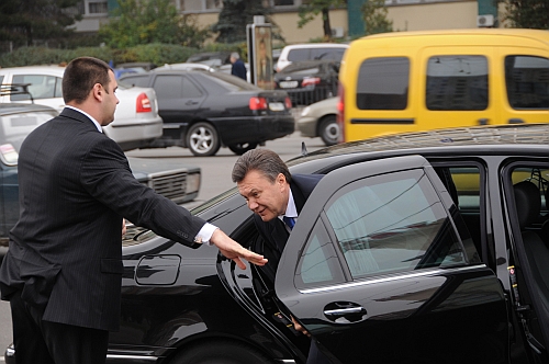 На ще одне запитання, чи планує він перемогу в першому турі, Янукович лише облизнувся й пішов до авто.