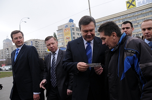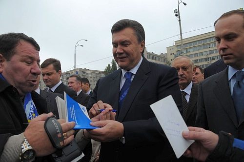 | До Януковича підбіг якийсь чоловік, який тицьнув йому своє фото з лідером на якомусь заході - дуже хотів автограф. Янукович написав йому кілька слів і залишив автограф |