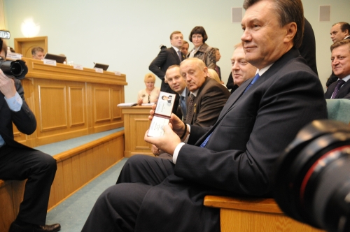 | - Ей, дай ручку, я теж хочу, щоб мені написали, - тягнувся ще один регіонал за автографом. Янукович і йому залишив автограф. |