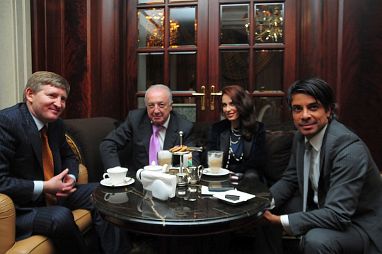 Через півгодини УП знайшла Ахметова у кав'ярні готелю, де він у компанії Бориса Фуксмана, Бережної та Арфуша обговорював свої телевізійні плани.
