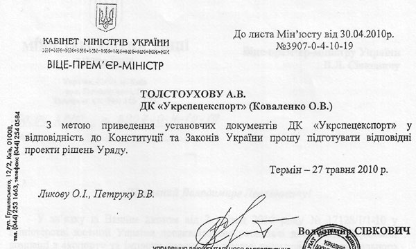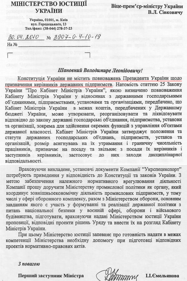 Сівкович не встиг провести необхідні зміни до законодавства, а Янукович своїм указом призначив керувати "Укрспецекспортом" депутата-регіонала Дмитра Саламатіна. Тобто, як випливає з роз'яснення Мінюсту, Янукович фактично вийшов за межі своїх повноважень.