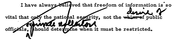 Линдон Джонсон собственноручно добавил слова "...которую позволяет разгласить национальная безопасность". В начальном варианте речи их не было |