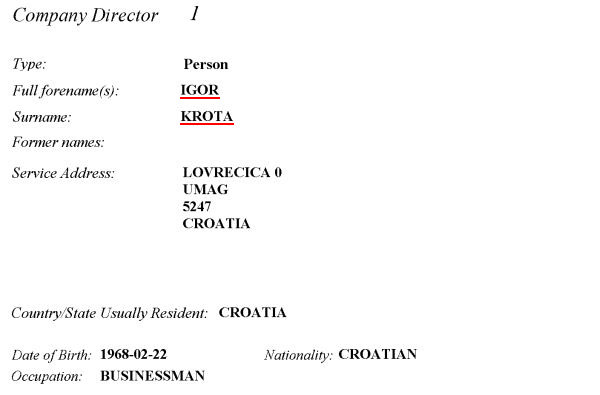 "Українська правда" знайшла установчі документи Legal Busines Consultans LTD, на яку було перераховано майже мільйон євро. Цю фірму заснували двоє інших хорватів - Ігор Крота та Сандро Стіпанчіч.