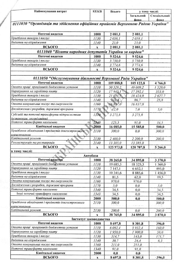 Додаток: Повний проект кошторису Верховної Ради-2011