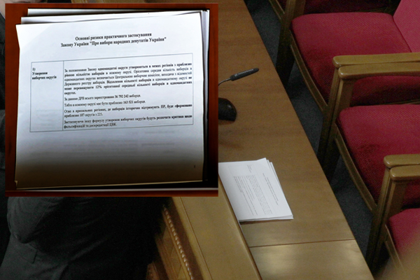 Перша ж сторінка документа підтверджує стурбованість Партії регіонів щодо розподілу виборчих округів.Очевидно, аналітична записка готувалась ще напередодні ухвалення чинної редакції закону. Про це свідчать досить застарілі дані реєстру виборців, які були актуальними в листопаді-грудні минулого року.