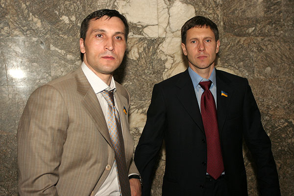 | Юрій Чертков (праворуч) разом із іншим депутатом Ахметова Сергієм Києм (ліворуч) |
