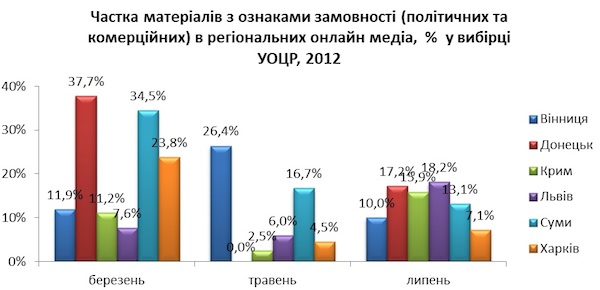 Протягом півроку спостерігаємо, що видання стабільно друкують великий відсоток матеріалів із ознаками політичної та комерційної замовності й прихованої реклами.