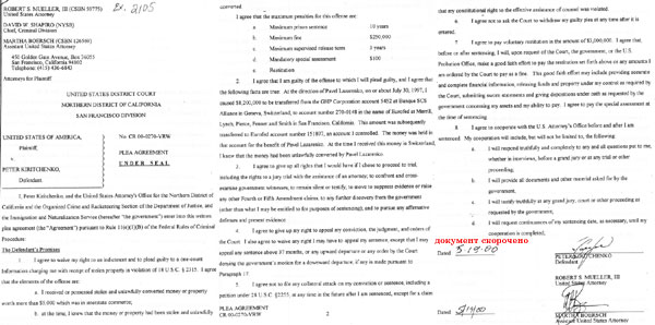Угода Кириченка з американським слідством багато років була засекречена – на ній стояла позначка "under seal", але зараз цей документ також можна знайти серед файлів у суді Сан-Франциско. Тож там можна дізнатися, на яких умовах він обміняв свою свободу за свідчення про Лазаренка.