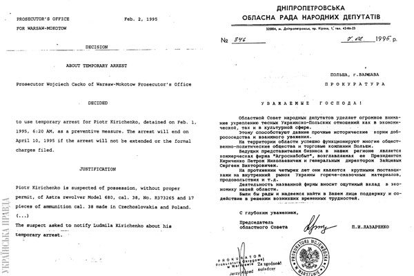 Лазаренко кинувся рятувати друга - він як голова Дніпропетровської облради написав листа до прокурора Варшави з клопотанням про "підтримку та сприяння у вирішенні тимчасових ускладнень". Генконсул України у Польщі Василь Коваль звернувся про звільнення Кириченка під заставу. Інший співробітник дипустанови Андрій Новаковський, третій секретар посольства України у Польщі, заявив, що це його пістолет, який він просто залишив у офісі Кириченка.
