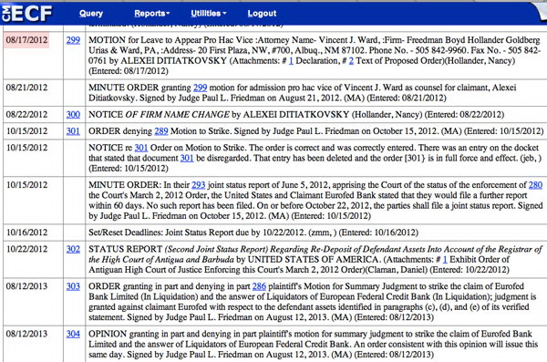 Цей цивільний процес розпочався у американській столиці в 2004 році. Справі присвоєно номер 1:04-cv-00798-PFL, вона триває вже десятий (!) рік, і кінця-краю не видно. Але і тут офіційно Україна не має жодного стосунку до даного процесу.