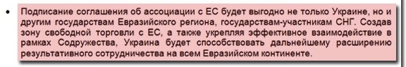 Это тезисы, которыми департамент идеологического и коммуникационного обеспечения Партии регионов вооружала своих депутатов для отстаивания подписания Соглашения об ассоциации с ЕС. Они высылались с почтового адреса [email protected] каждому (!) члену парламентской фракции Партии регионов и в обязательном порядке.