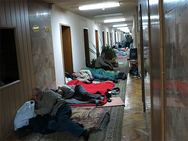 | Аби дістатися місця зустрічі, МакКейн пройшовся цим коридором захопленого революціонерами Будинку профспілок |