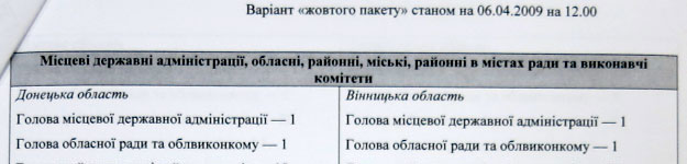 Підготовлений Тимошенко "жовтий варіант" від 6 квітня пропонував інший розподіл - під Януковича мав піти 21 мільйон громадян, під Тимошенко – 25 мільйонів. Усе це виглядає як розподіл кріпосних між "панами".