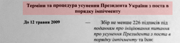 Загалом Тимошенко і Янукович підготували вісім сторінок з покроковим розписом дій. Власне, сам імпічмент Ющенку вони планували оголосити 6 серпня 2009 року.