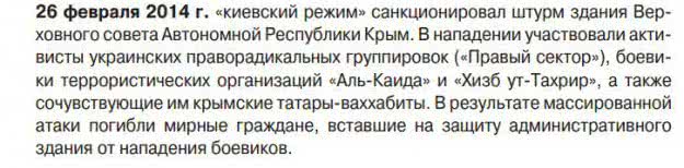 В нем русский исследователи отыскали следующую информацию: "19 февраля 2014 около города Корсунь-Шевченковский несколько автобусов, на которых возвращались в Крым участники митинга против евроинтеграции на Михайловской площади в Киеве, были обстреляны из огнестрельного оружия… участников митинга повалили в одну кучу на обочине и облили бензином, угрожая поджечь. Из толпы боевиков, по словам очевидцев, кричали: "Подождите, мы к вам в Крым еще приедем. Будем вас резать и стрелять, кого не добили и не достреляли".