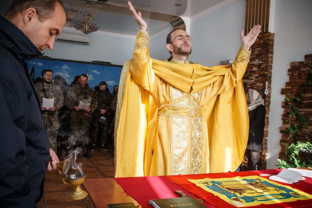 | Воскресная служба в церкви на базе батальона "Святая Мария" |